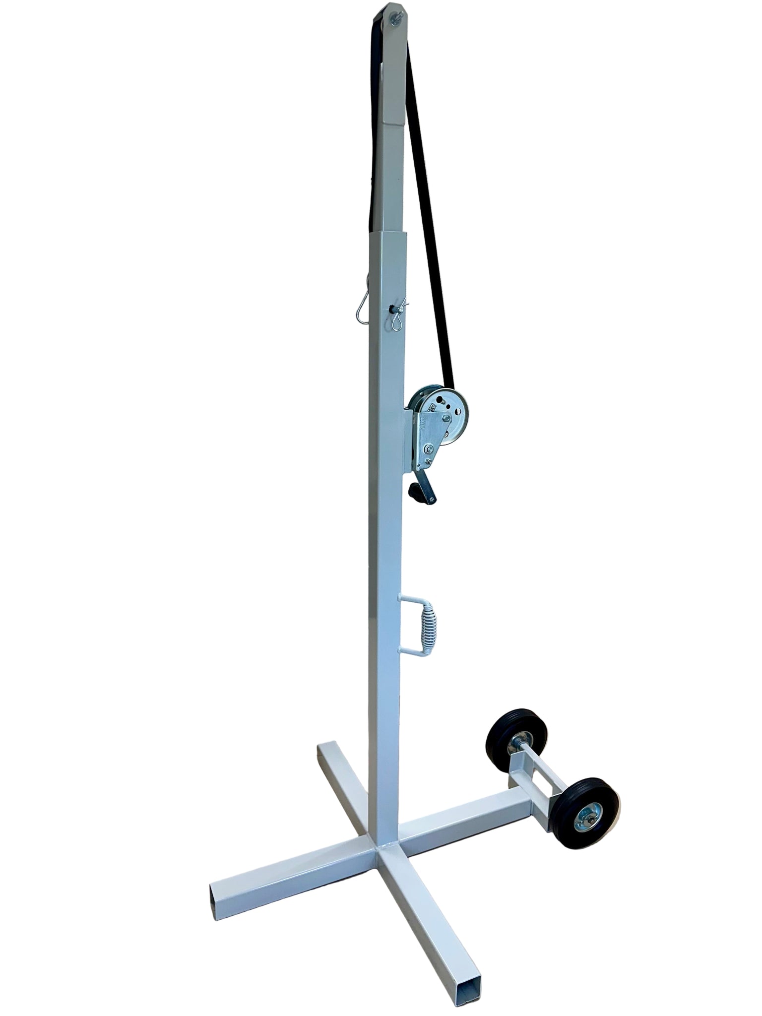 Use the frame tent jack to assist in raising and lowering your frame tent. Works on tents with 7'-10' legs. Sold with or without wheels.